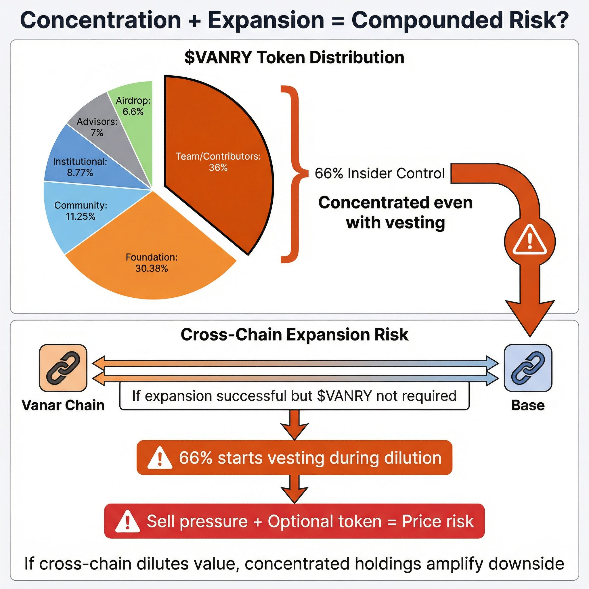 also: 66% token allocation to team and foundation. even with vesting, that's concentrated. if cross-chain expansion doesn't drive clear VAnry, that's a lot of sell pressure waiting when insiders vest.