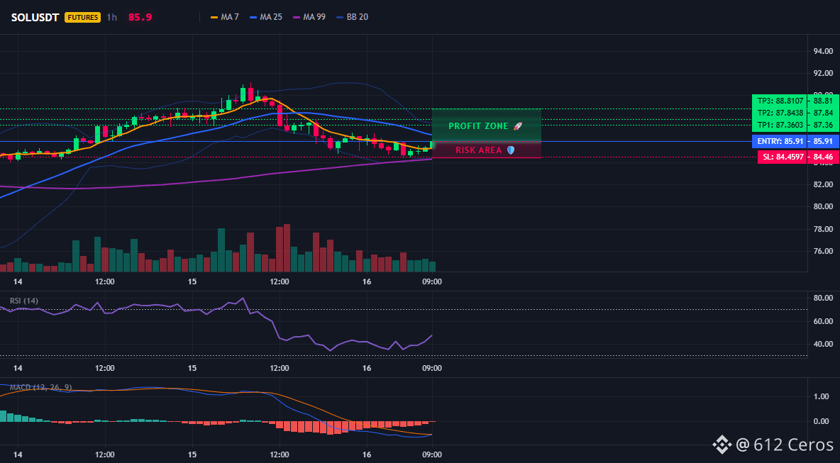 While the daily (1D) structure still leans bearish, the 4H chart is showing early signs of strength. Price is holding above the 1H EMA around 85.91, suggesting buyers are defending short-term structure.