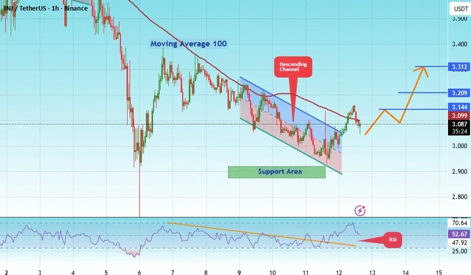The price is moving within a descending channel on the hourly timeframe. It has reached the lower boundary and is heading towards a breakout, with a retest of the upper boundary expected.