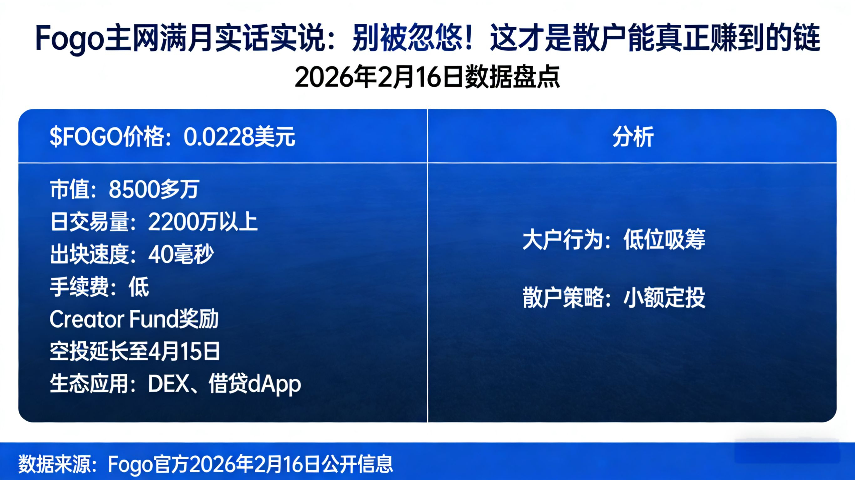 2026年2月16日,Fogo主网上线已经一个多月了,作为一个天天实操的普通小散,我不吹不黑,只讲最真实的体验。