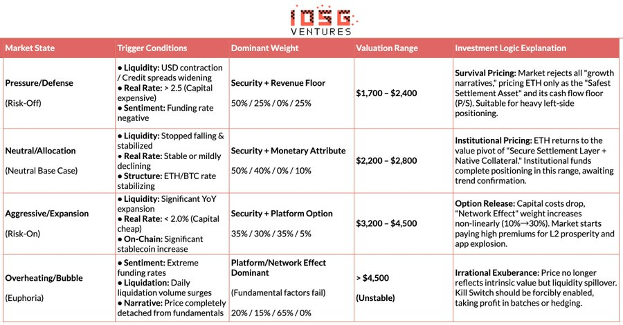 Against the backdrop of high macro real interest rates, liquidity not yet being loose, and on-chain growth options not yet permitted to be priced by the market, ETH's price naturally converges to a structural value range supported by settlement certainty, verifiable yield, and institutional consensus. This range is not a sentiment bottom, but a value pivot after stripping away platform growth premiums.