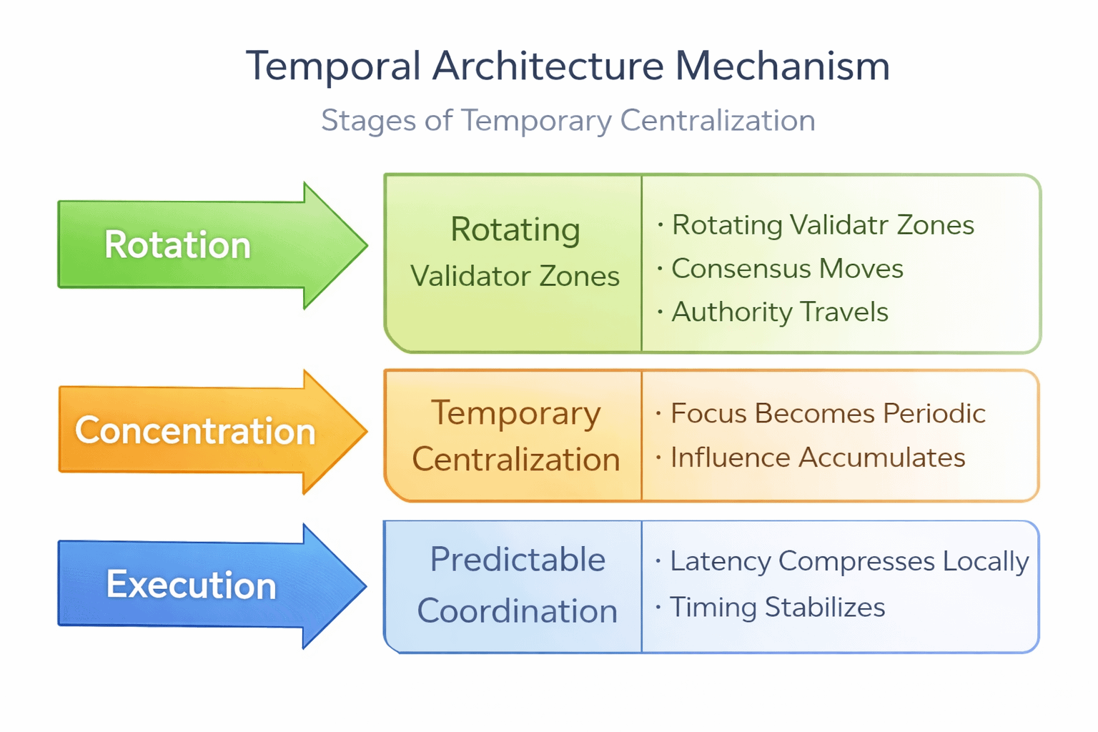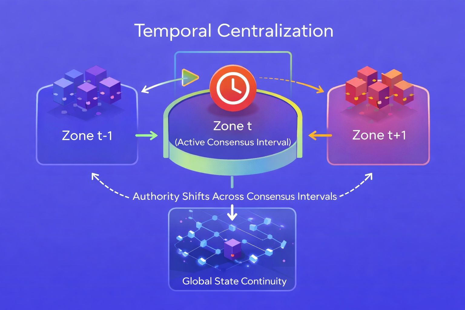 So decentralization isn't absent; it becomes longitudinal. Balanced over a cycle rather than at an instant.