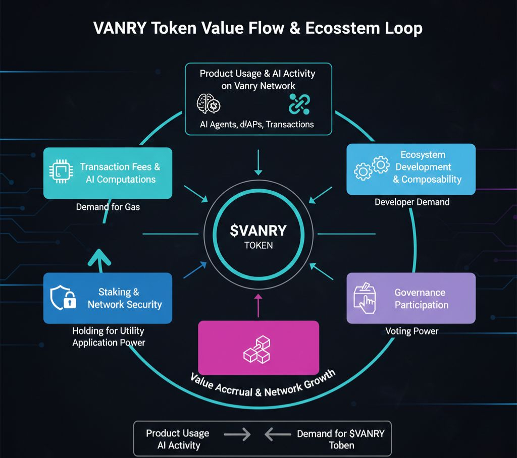 At its core, Vanry powers the network. Every transaction, every smart contract execution and every AI-related computation that touches the chain consumes resources. Those resources are paid for in VANRY. So when developers build, when users interact, when AI systems execute, they all create demand for the token.