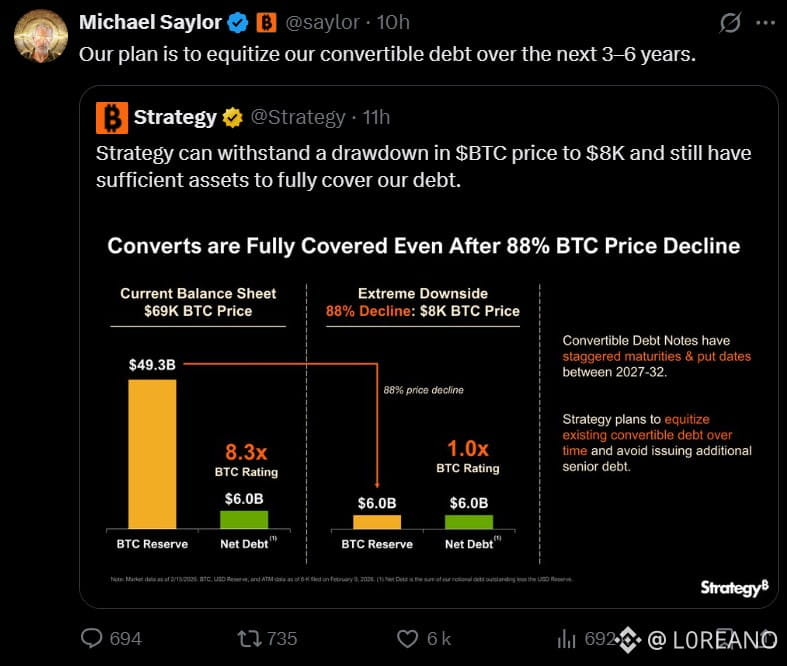 La société dirigée par Michael Saylor affirme avoir structuré son bilan pour résister à une chute majeure du BTC ( jusqu’à 8 000 $ ) tout en conservant suffisamment d’actifs pour couvrir intégralement sa dette.