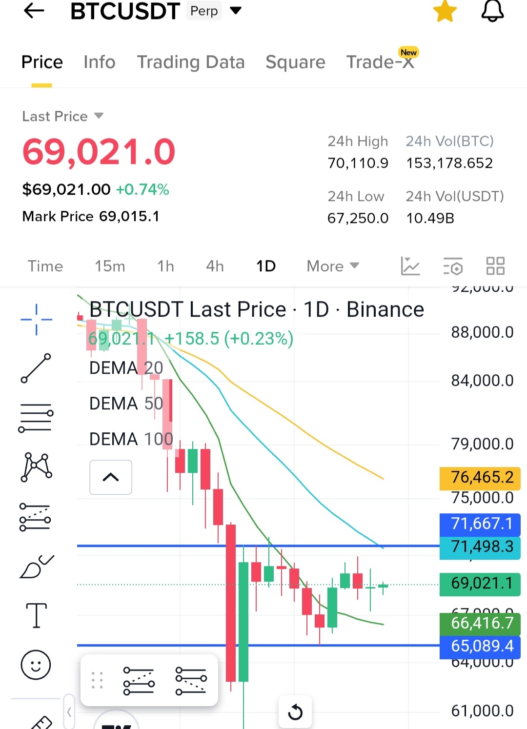 Bitcoin $BTC — trading near $69,021, modest intraday movement.