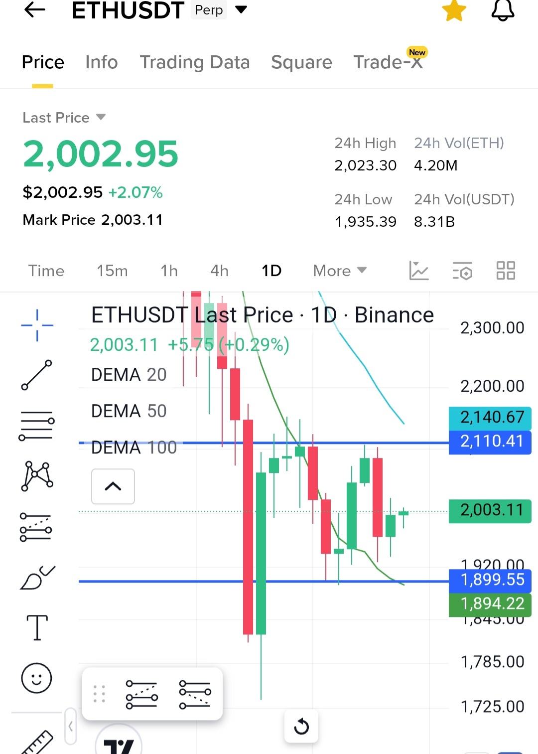 Ethereum $ETH — around $2,002, showing a slight rebound.