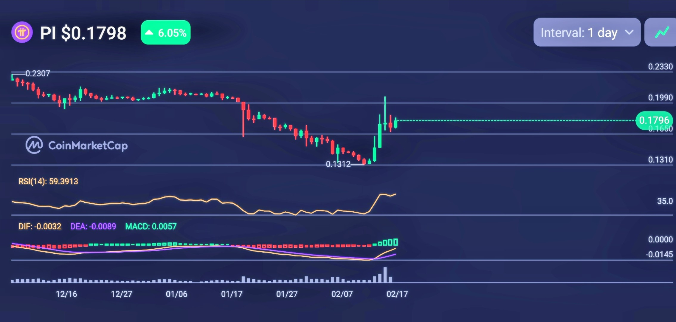 As of February 17, 2026, PI is trading around $0.134, with a modest 2% uptick in the last 24 hours amid the upgrade buzz. Key levels to watch: