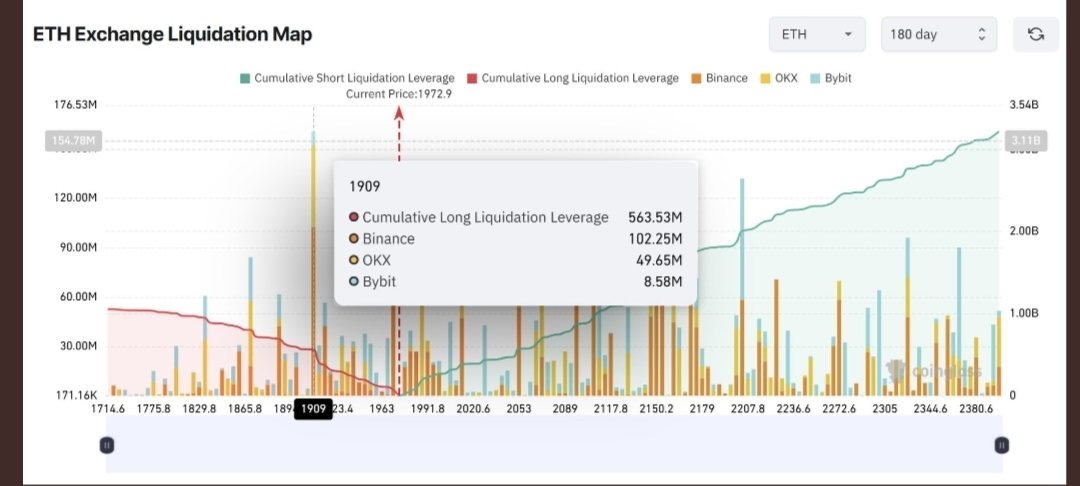 This imbalance suggests that while a sweep toward $1,909 is possible in the short term, the larger liquidation pressure sits overhead, increasing the probability of an upside squeeze if momentum flips.