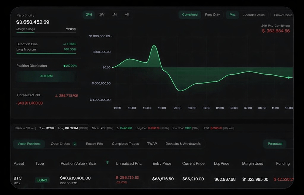 With this level of leverage, the position is extremely risky. A move of just 6% to the downside in Bitcoin’s price would result in a full liquidation, wiping out the entire trade.