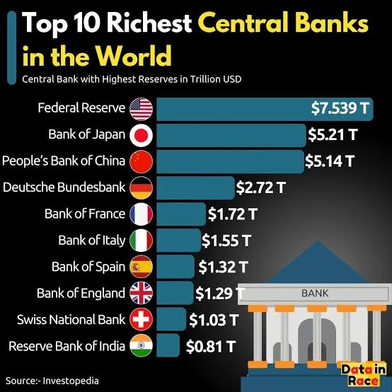 People’s Bank of China — $5.14T 🇨🇳 Digital yuan pioneer, pushing de-dollarization hard.