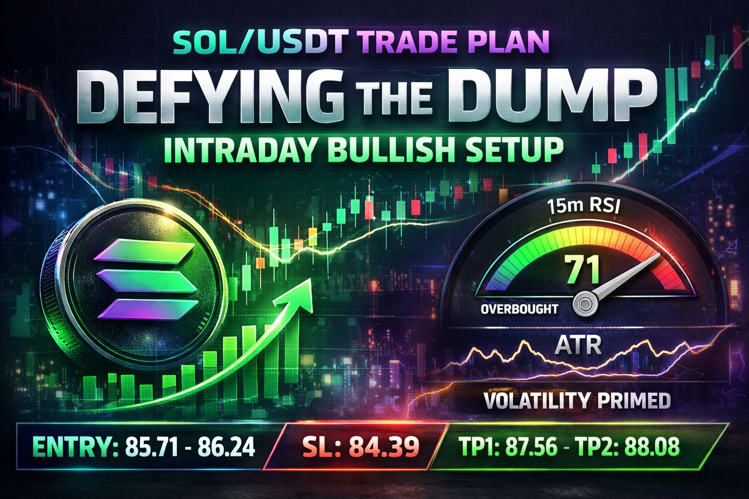 While the broader market is leaning bearish and many traders are calling for another leg down, SOL is quietly telling a different story on lower timeframes. Intraday momentum is flipping, and the 15-minute structure is starting to favor a tactical long — even against a bearish daily backdrop.