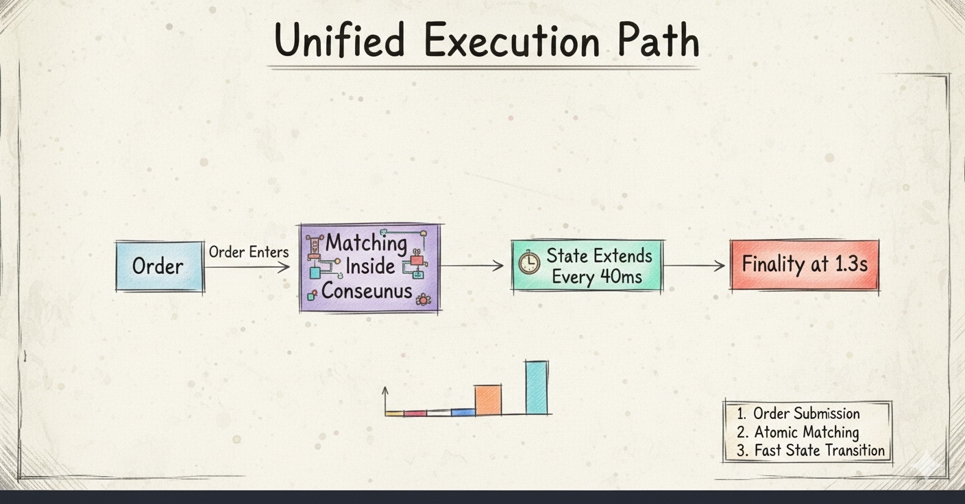 When a block rotates every 40ms, matching is not waiting behind an application boundary. Settlement is not a second act. Multi local consensus extends the ledger and the venue at the same time. Turbine compresses the propagation path so state converges before debate forms. At 1.3s finality the result is anchored without ceremony.