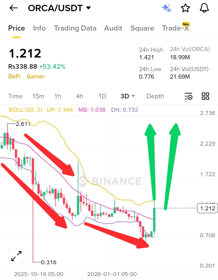 The pump phase generally begins once liquidity below support has been collected and selling pressure weakens. If $ORCA bounced strongly from a major support level with increased volume, it indicates that buyers stepped in aggressively. A breakout above short-term resistance, especially reclaiming the middle Bollinger Band or key moving averages, signals a temporary momentum shift. However, not every pump means full reversal. Relief rallies inside a broader downtrend are common, especially when short sellers close positions and momentum traders enter quickly. Volume confirmation is critical — sustainable upside requires continued expansion in bullish volume, not just a single spike.