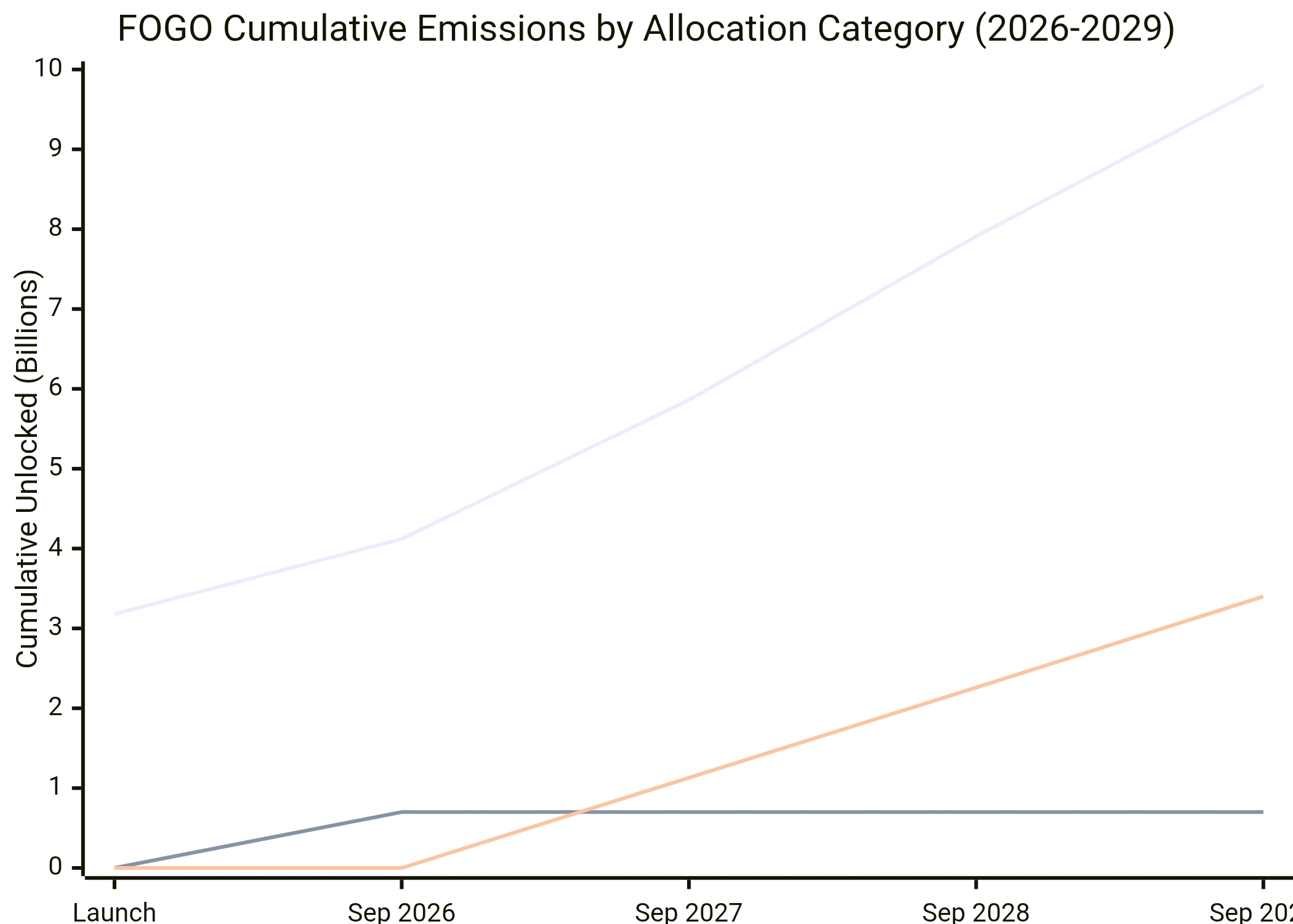 1. Emission Front-Loading: The advisor cliff in September 2026 represents the single largest discrete supply event, after which emissions enter a predictable linear regime.