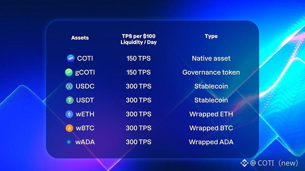To qualify for daily reward drops, users must hold one of the following assets on the COTI Network, and open a liquidity position on Carbon DeFi. Each asset will earn TPS as a set rate each day per $100 deployed. Meaning rewards scale proportionally with the liquidity provided. The more you deposit and liquidity you provide, the more you earn!