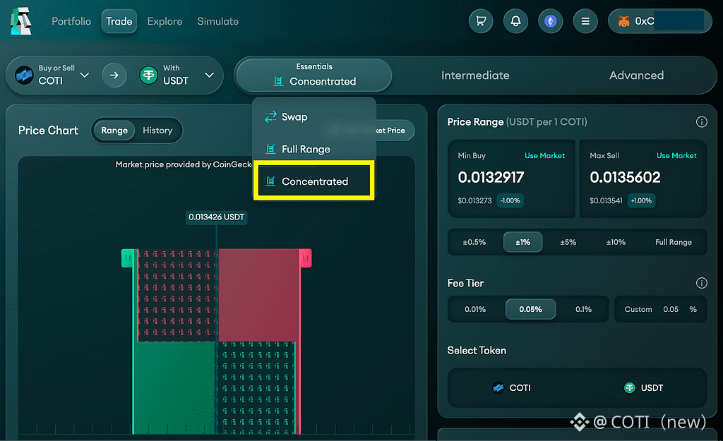 Concentrated liquidity: Full range liquidity: Deploy capital across the entire market range. Manage concentrated liquidity positions while choosing your specific spread, with built-in auto-compounding.