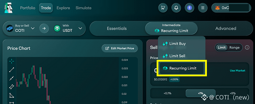 Recurring Limit Order: an automated grid trading strategy. Buy order and sell order are connected allowing funds to automatically rotate between them in an endless loop.