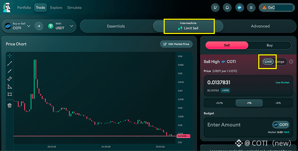 Connect your wallet — ensure you are on COTI Network