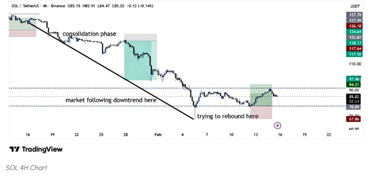 Meanwhile, veteran trader BitGuru recently observed that Solana has been following a clear downtrend for weeks in the 4-hour timeframe, characterized by lower highs and lower lows. However, the market is now attempting a small rebound after holding a key support zone.