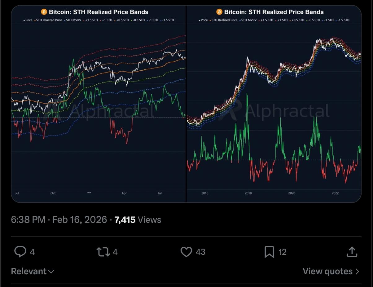 According to on-chain analytics platform Alphractal, Bitcoin is hovering around a key support level based on the average price paid by short-term holders. In past cycles, when price falls into this area, one of two things usually happens: either a local bottom forms, or the market enters a stronger selloff before long-term accumulation begins.