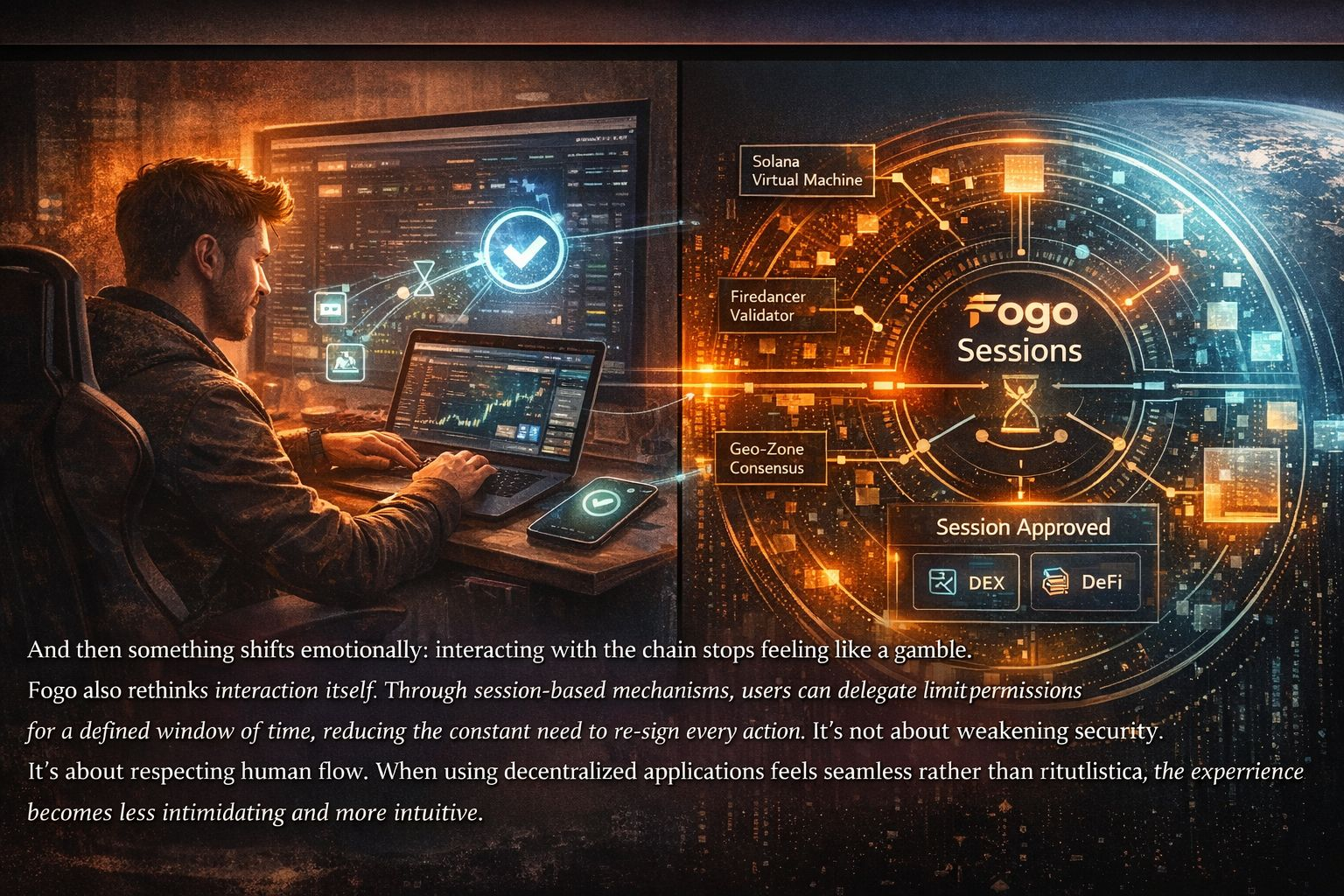 Fogo also rethinks interaction itself. Through session-based mechanisms, users can delegate limited permissions for a defined window of time, reducing the constant need to re-sign every action. It’s not about weakening security. It’s about respecting human flow. When using decentralized applications feels seamless rather than ritualistic, the experience becomes less intimidating and more intuitive.