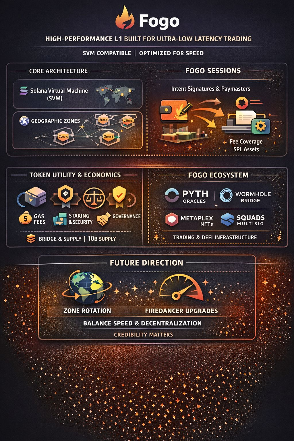 Fogo’s real test won’t be whether it can hit impressive metrics in controlled conditions; it will be whether it can make performance a durable social contract. A speed-first chain lives and dies by credibility: credible validator standards, credible governance over zone rotation, credible constraints against predatory behavior, and credible alignment between a frictionless user experience and a token economy that still captures value. If Fogo can prove that low latency can coexist with transparent, evolving decentralization—rather than being purchased through permanent concentration—then it doesn’t just become “another SVM chain.” It becomes a new template for how blockchains compete with financial infrastructure: not by copying the shape of markets, but by matching the tempo that makes markets work.