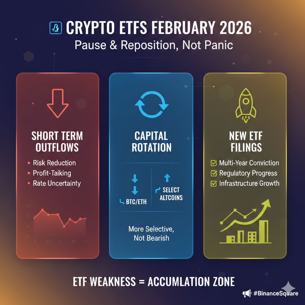 📊February 2026 has turned into a crucial month for crypto ETFs, offering a clear window into how institutional money is behaving during market uncertainty.$BTC