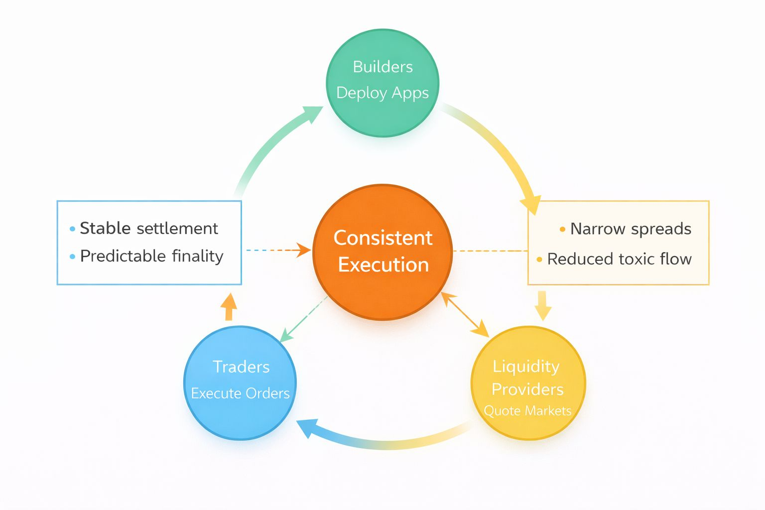 When execution stops rewarding reaction speed, behavior changes. Traders compete on pricing judgment rather than ordering priority, and liquidity begins to quote instead of chase.