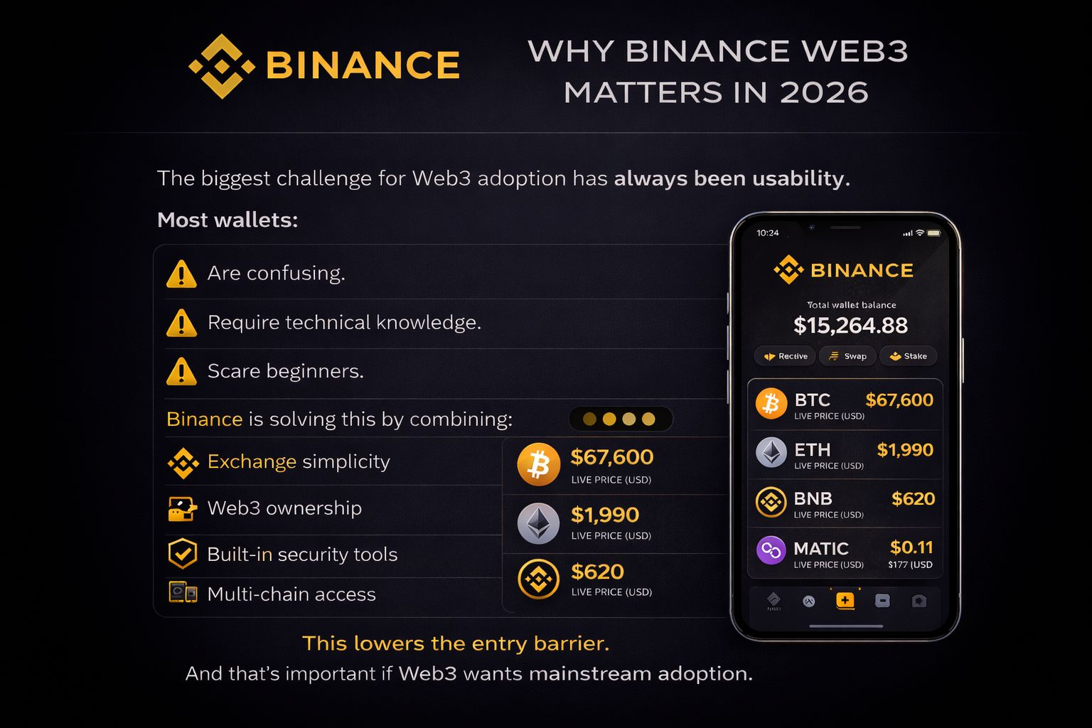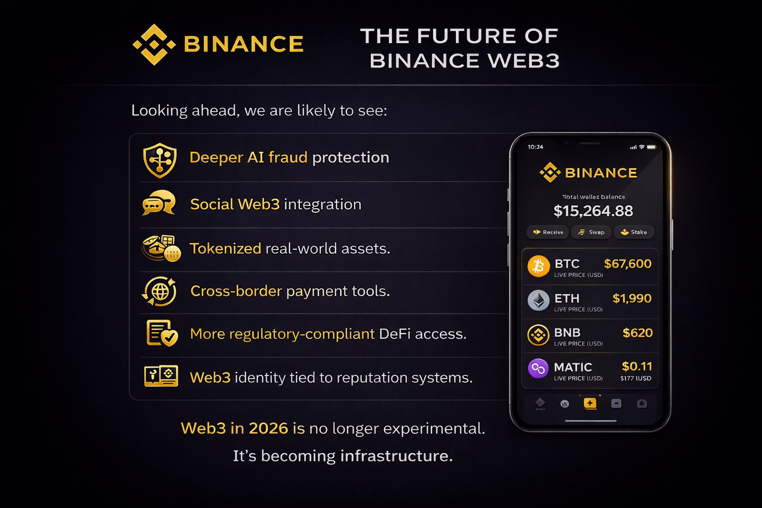 Binance Web3 in 2026 integrates decentralized identity protocols to make login easier and more secure.
