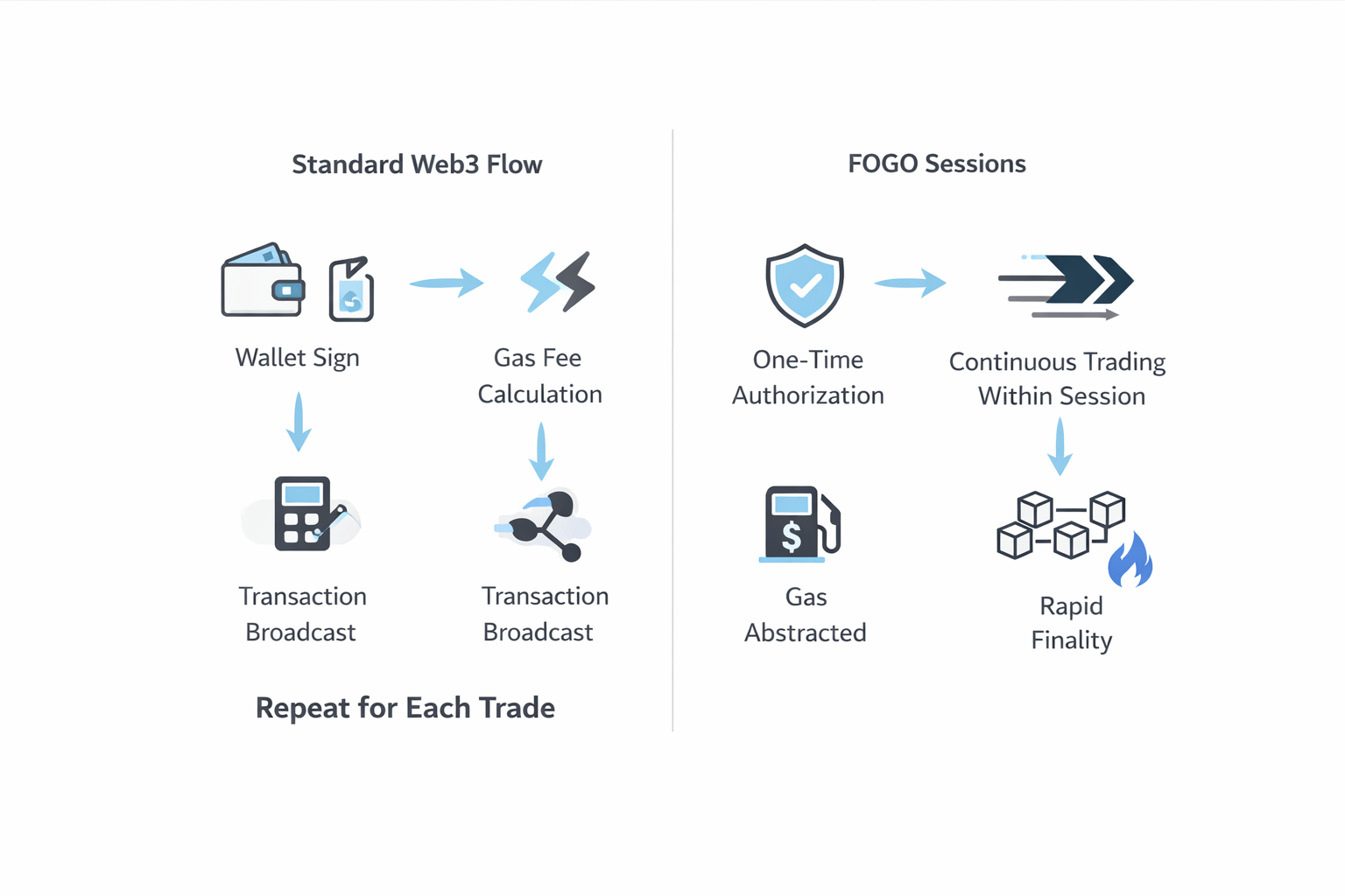 At its core, a FOGO Session is a way to interact with onchain markets without constantly signing transactions or worrying about gas fees. Instead of treating every action as a separate blockchain event that requires your direct approval, the system creates a temporary session environment. Within that session, trades can execute quickly and feel closer to how traditional online brokerages work.
