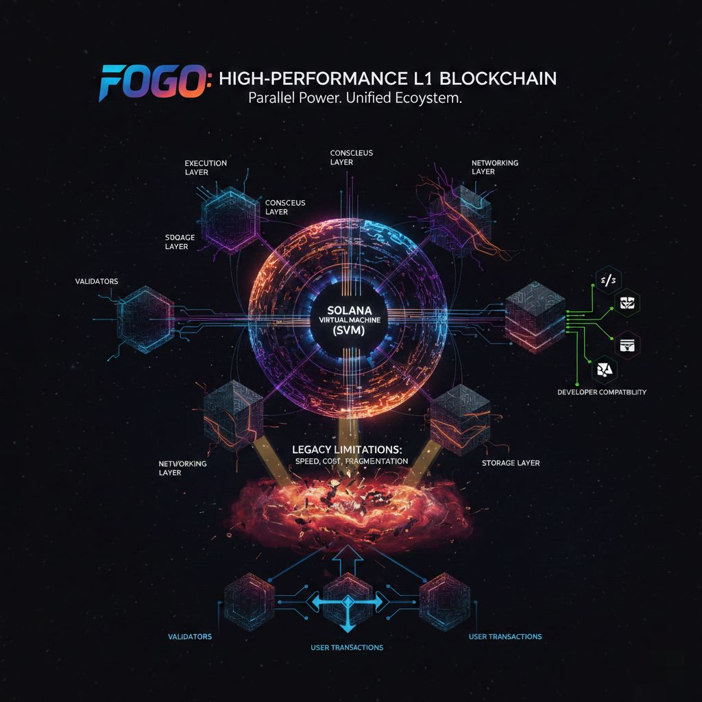 @Fogo Official Blockchain infrastructure has evolved through several generations, each attempting to solve limitations in speed, cost, scalability, and developer usability. Early networks demonstrated decentralization and security but struggled with performance and usability. Later systems improved scalability through alternative consensus models, modular design, and virtual machine improvements. Fogo represents a newer approach in this progression. It is a high performance Layer 1 blockchain designed around the Solana Virtual Machine, commonly known as the SVM. Its design focuses on improving execution efficiency, developer compatibility, and network scalability while maintaining decentralization and security properties expected from modern blockchain systems.
