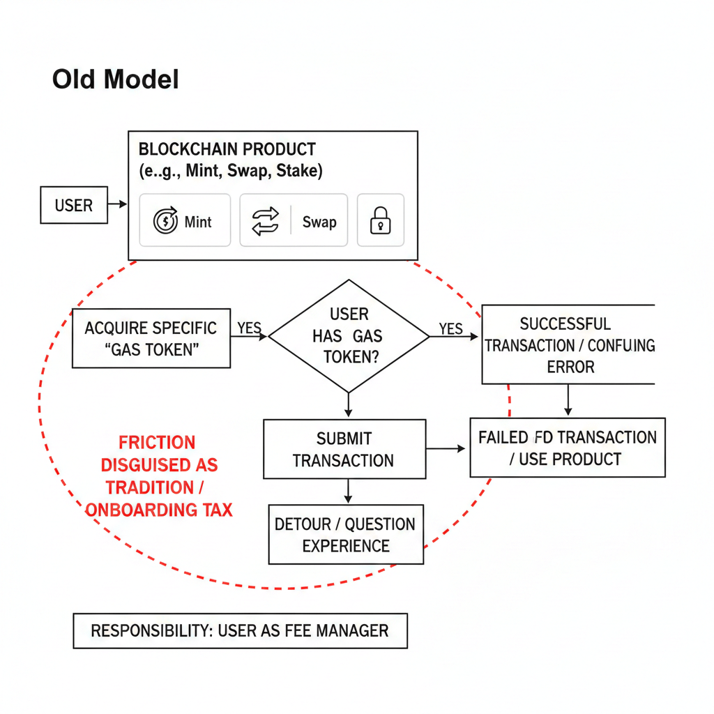 In the old model, the chain makes the user the fee manager. You want to mint, swap, stake, vote, do anything? First go acquire a specific token for the privilege of pressing buttons. If you don’t have it, you don’t get a warning that feels like a normal product warning — you get a failed transaction, a confusing error, and a detour that makes people question the whole experience. That isn’t a “learning curve.” That’s friction disguised as tradition.