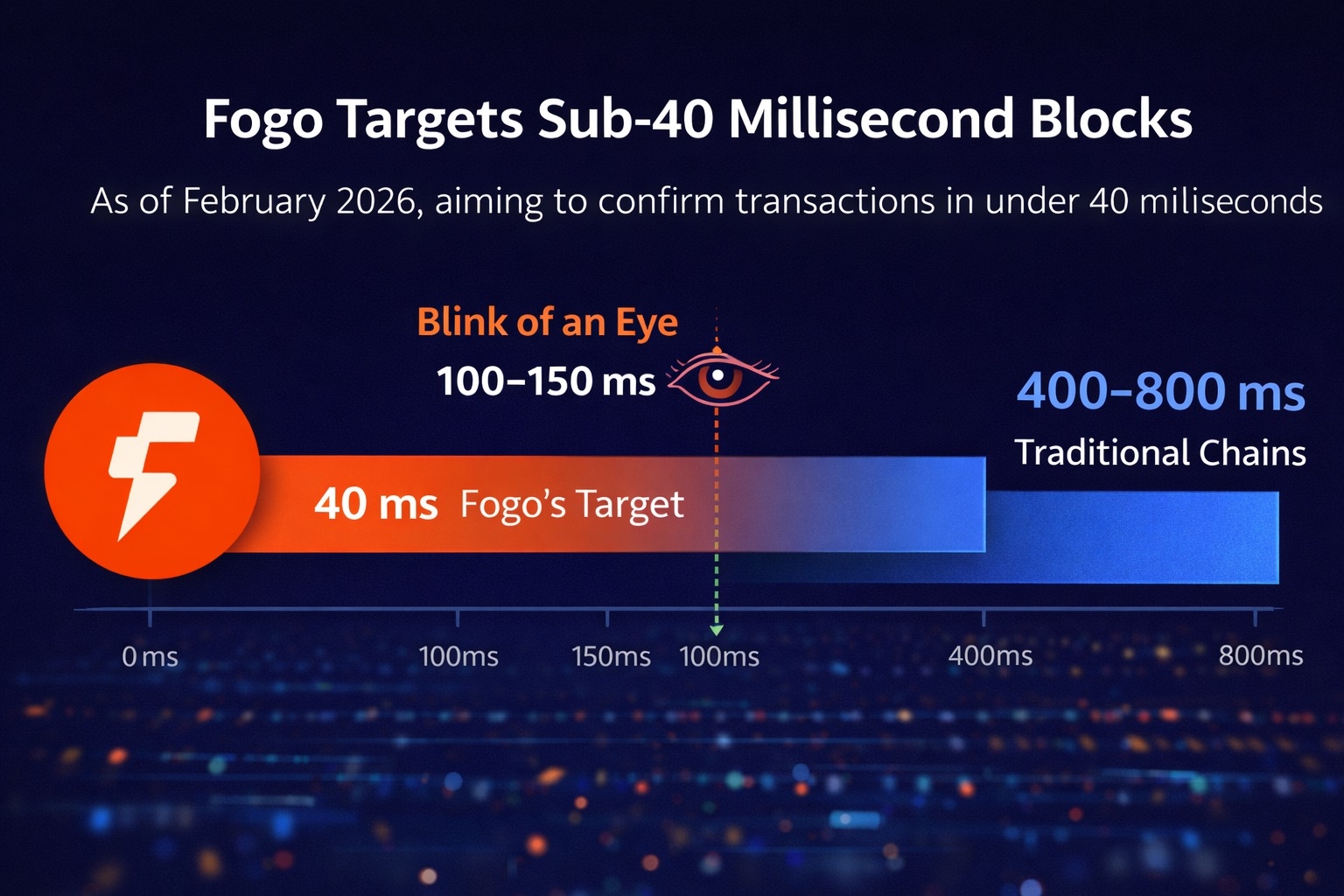As of February 2026, Fogo’s network design aims for block times under 40 milliseconds. That number sounds abstract until you compare it. Forty milliseconds is less than the blink of an eye, which takes roughly 100 to 150 milliseconds. In practice, that means transactions can be grouped and confirmed at a pace closer to financial trading systems than traditional chains that operate in the 400 to 800 millisecond range.