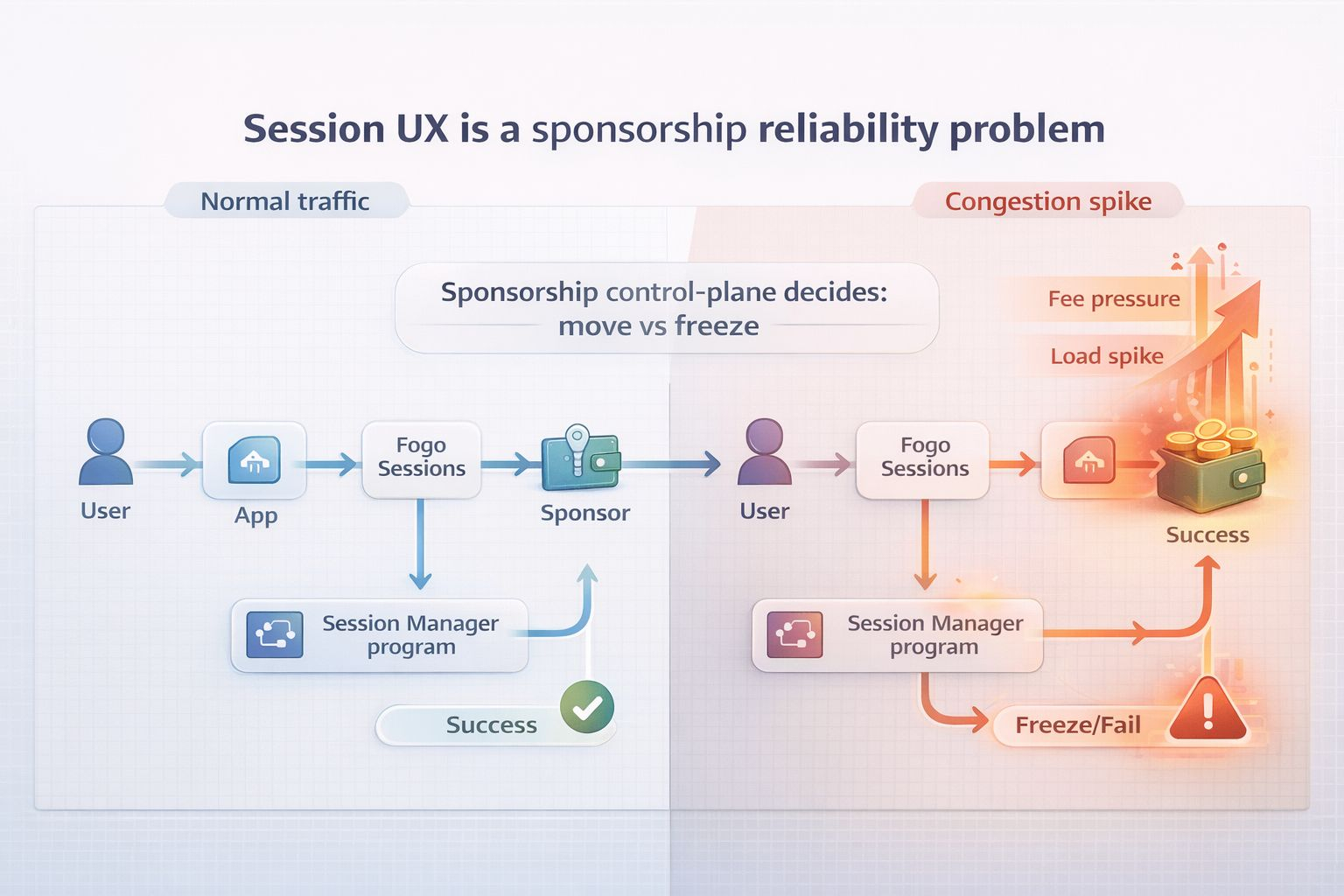 The first time I tried a sponsored session during a busy window, what hit me was not speed but friction. I could feel my attention getting cut into small pieces by repeated prompts and small failures, and I felt that quiet doubt that the next tap would work. That is why I keep thinking about Fogo Sessions and the Session Manager program as more than convenience tools. In congestion spikes, they act like a sponsorship control plane that decides whether fee sponsorship keeps a user flow moving or whether it freezes under congestion.