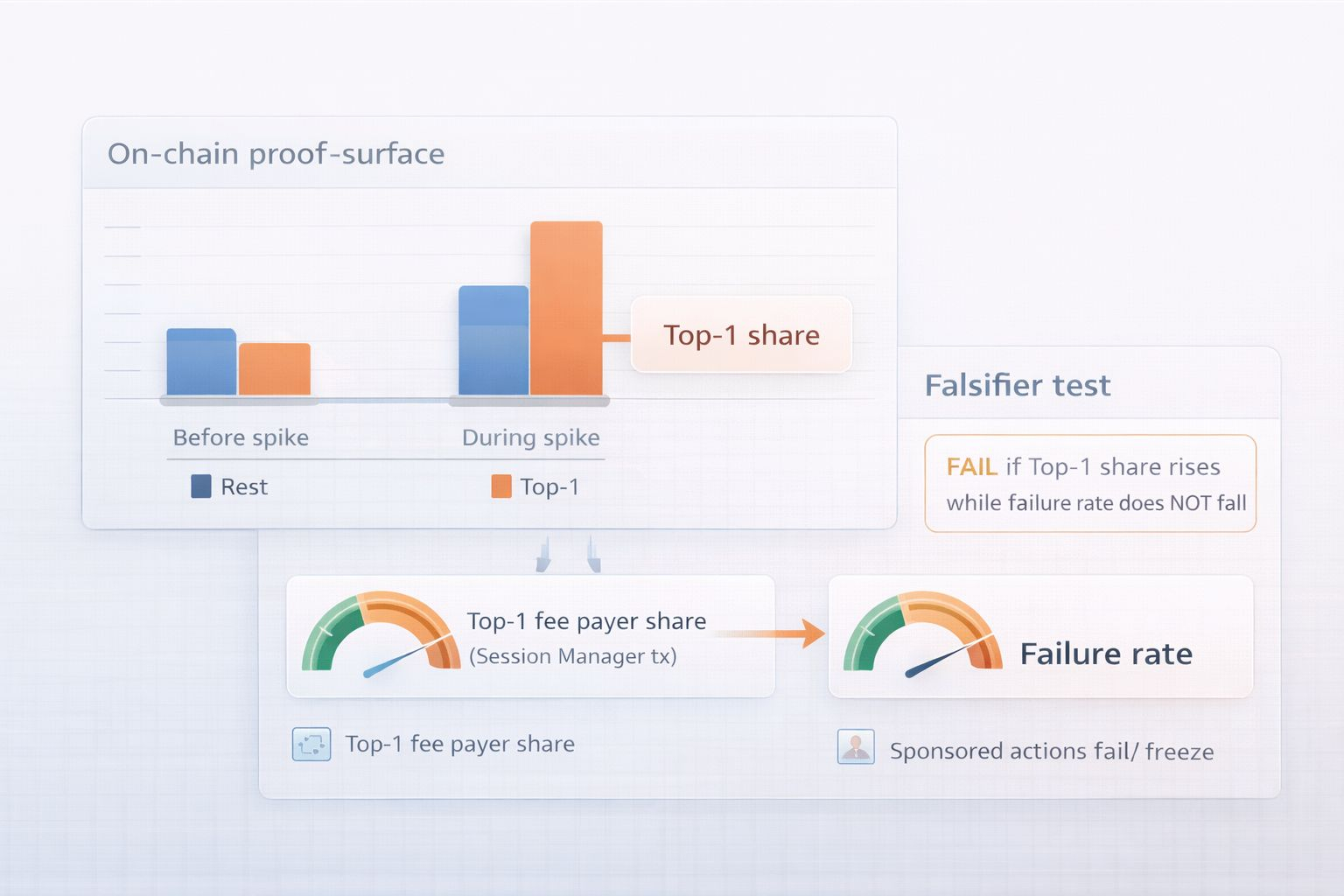If, during congestion spikes, the top 1 fee payer share inside Session Manager program transactions rises while the Session Manager program transaction failure rate does not fall, then Fogo Sessions are not delivering steadier sponsored execution.