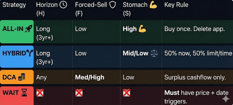 RULE: buy 50% today. split the rest: