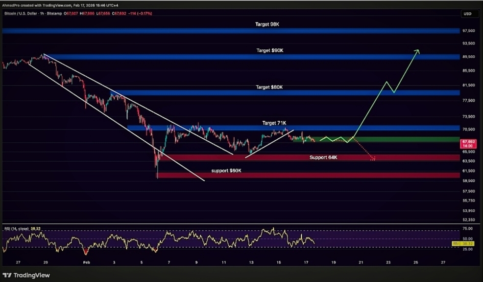 من ناحية أخرى، إذا تم اختراق المقاومة عند 70,000 – 71,000 دولار أمريكي، فإن الطريق سيكون مفتوحًا لمستويات أعلى، مع أهداف محتملة عند 80,000 دولار أمريكي، وصولًا إلى 98,000 دولار أمريكي.