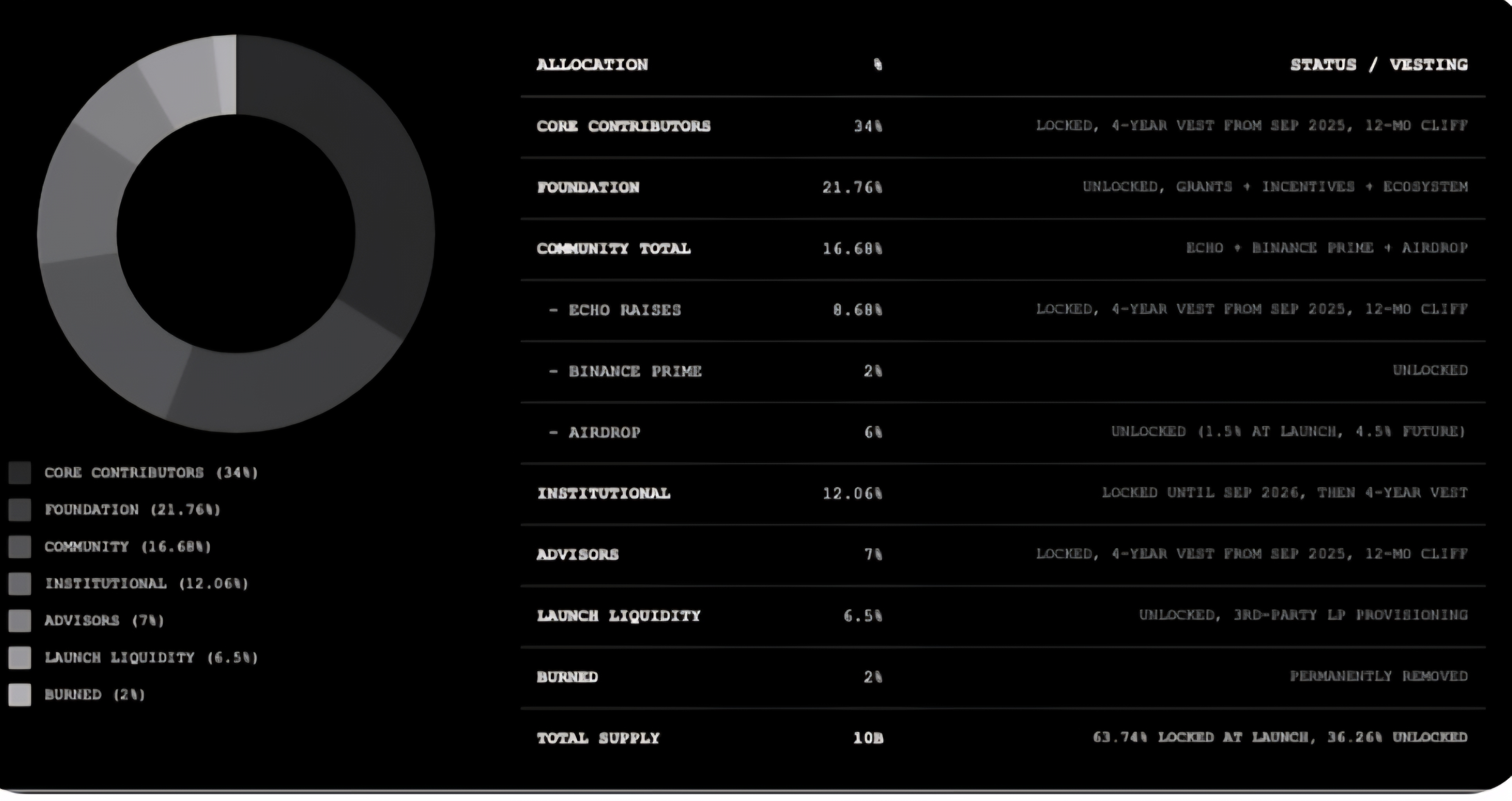 Tokenomics reflect long-term alignment as well: 2% annual inflation, multi-year vesting schedules, and significant portions locked at launch. Early speculation isn’t the design goal; sustainability is.