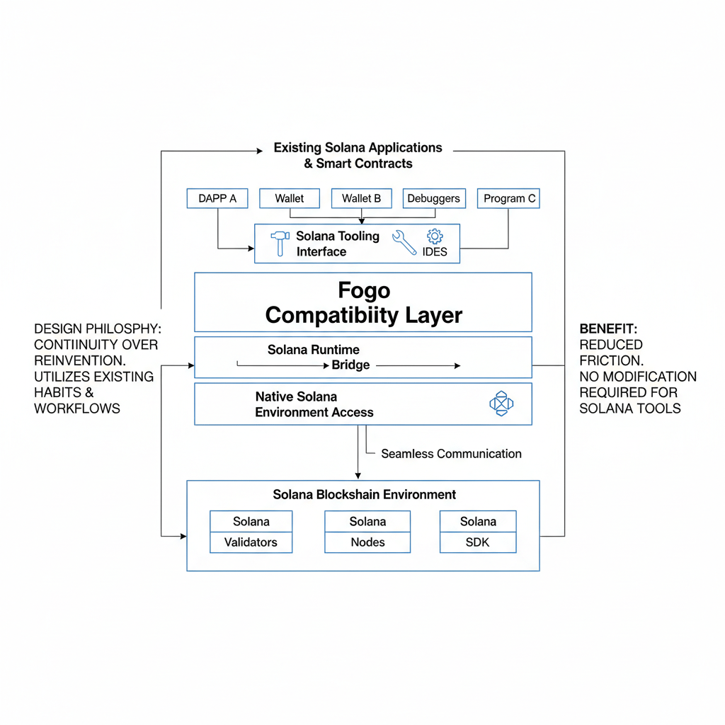 Fogo appears to have been shaped by observing these moments closely. It does not attempt to invent a new programming environment or force developers into unfamiliar territory. Instead, it chooses compatibility, allowing existing tools and applications designed for Solana’s environment to function without modification. This decision reflects a certain humility in design. It accepts that the problem may not be creativity, but continuity. Rather than encouraging reinvention, it allows extension. That choice reduces friction, not by simplifying the system itself, but by respecting the habits and workflows that already exist.