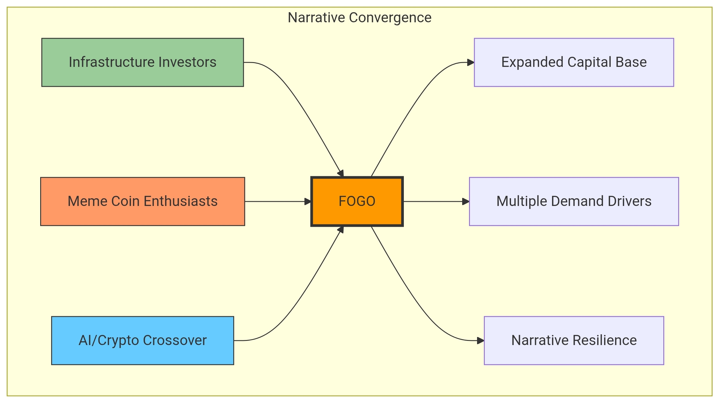 FOGO benefits from occupying a unique position in narrative space—simultaneously appealing to multiple investor segments that rarely overlap: