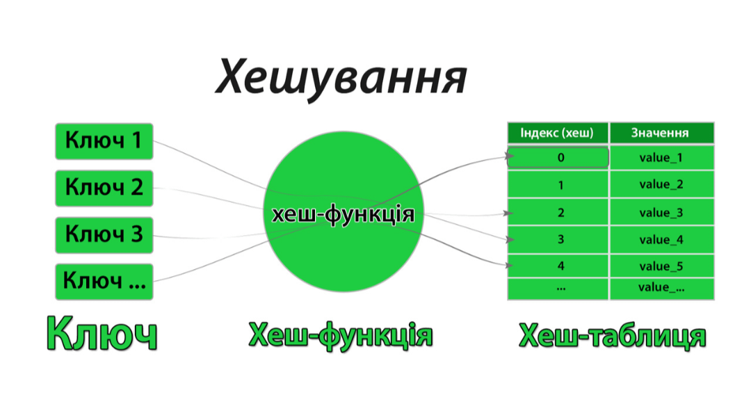 Хеш-функція — це детермінований алгоритм, який перетворює вхідний масив даних довільної довжини у фіксований рядок символів.