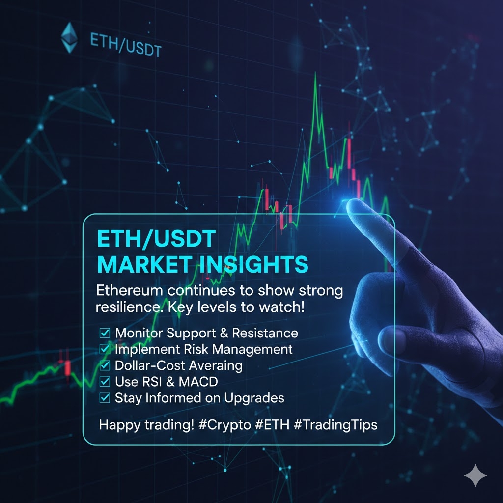 $ETH The ETH/USDT market continues to be a hot topic for traders. Ethereum, the second-largest cryptocurrency by market cap, has shown remarkable resilience and growth potential. Currently, ETH is trading against USDT, offering a popular pair for both seasoned and novice traders.$ETH For those looking to enter or already active in this market, keep a close eye on key support and resistance levels. Volatility is a given in crypto, so always implement robust risk management strategies. Consider dollar-cost averaging to mitigate entry risks, and never invest more than you can afford to lose. Technical indicators like RSI and MACD can provide valuable insights, but always combine them with fundamental analysis and broader market sentiment. Stay informed on Ethereum's network developments and upgrades, as these can significantly impact price action $ETH