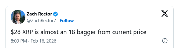 Crypto commentator Zach Rector recently emphasized this shift by describing a possible $28 valuation as nearly an eighteen-fold increase from current levels. His framing focuses on proportional growth rather than headline shock, encouraging investors to evaluate XRP through the lens of historical crypto cycle expansion.