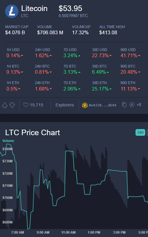 LTC is trading around ~$54 USD with modest daily movement, reflecting weak broader altcoin demand. LTC has seen price pressure below $95 resistance recently.