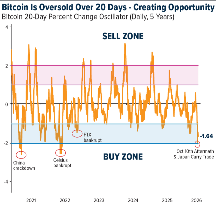 Technical Overselling: Bitcoin is currently trading roughly two standard deviations below its 20-day average—a rare extreme seen only a few times in five years. While this often leads to short-term bounces, the "psychological damage" prevents a full rally.