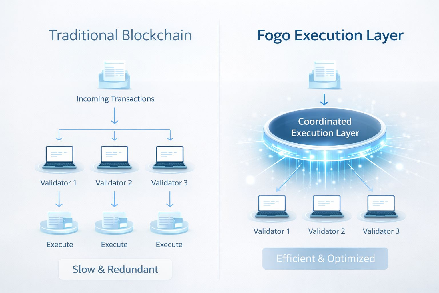 Fogo addresses this problem by rethinking how execution coordination works at the architectural level. Instead of allowing validators to operate in isolation, Fogo introduces a coordinated execution pipeline where validators operate with shared awareness of execution order and responsibility. This reduces redundant computation and allows the network to process transactions more efficiently. By improving coordination before execution occurs, Fogo ensures that computational effort is used efficiently rather than duplicated unnecessarily. This architectural shift improves throughput, reduces latency, and creates a more predictable execution environment.