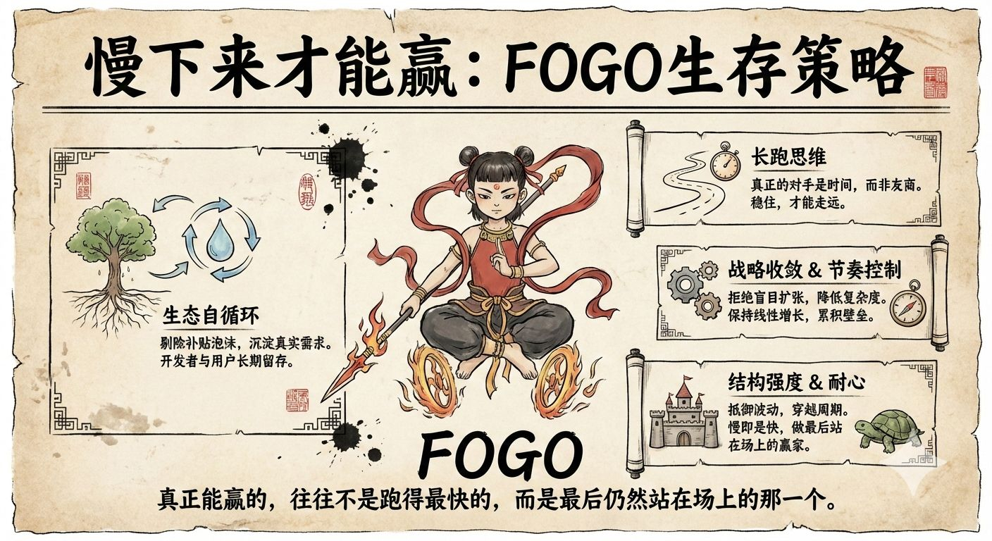 归根结底,我看重的不是某个阶段的表现,而是系统能不能在不同周期下保持方向不变。时间会淘汰情绪化结构,但会奖励持续建设的体系。$FOGO 现在展现出的不是一阵野心,而是一种耐心。短期胜负由市场情绪决定,长期存续则看结构强度。在这条赛道上,慢不代表落后,反而可能是更高级的策略。