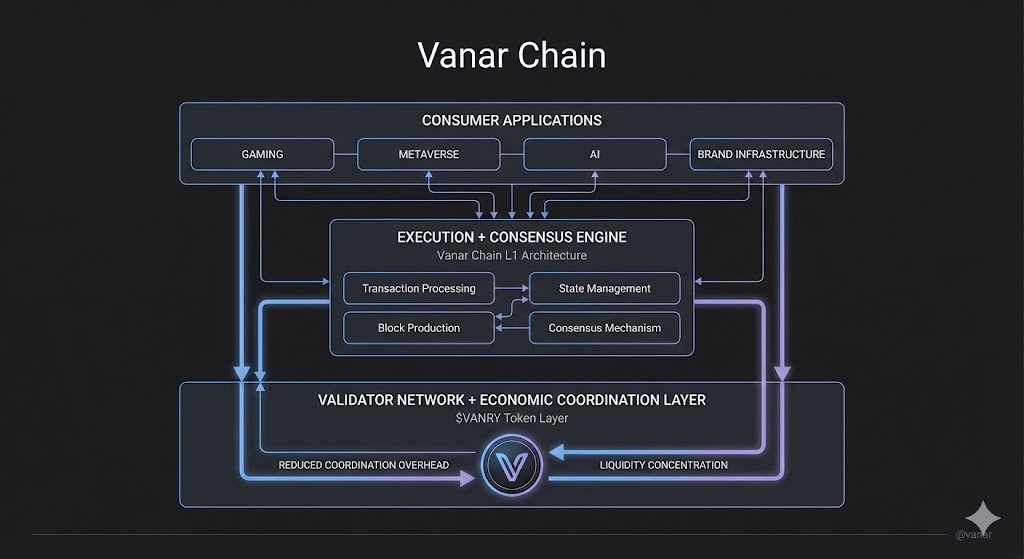 Vanar presents a clear structural argument: scaled without being coherent throws complexity to users and capital. VANRY is a stabilizer in a consumer-based blockchain because Vanar Chain coordinates everything instead of dividing, in order to stabilize the system instead of spread it out. The enduring networks might be the ones which reduce the cost of connecting layers rather than those which cut the most.