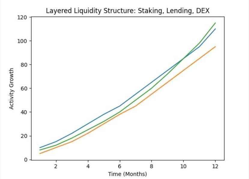 Liquid staking allows users to earn while staying active. Lending allows that same capital to circulate. DEX pools create trading depth. Validators secure consensus.