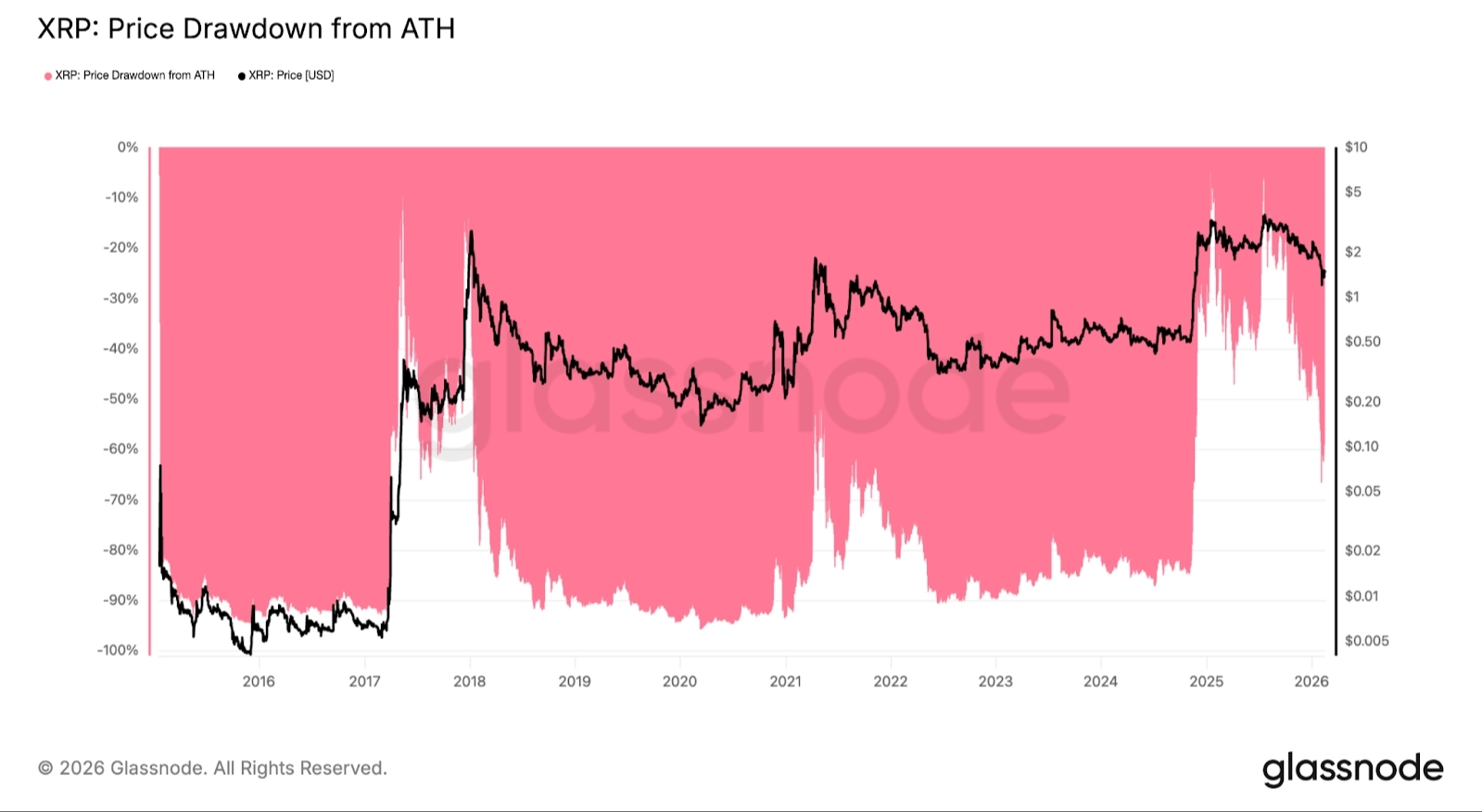 XRP: retração do preço em relação às máximas históricas.Fonte: Glassnode